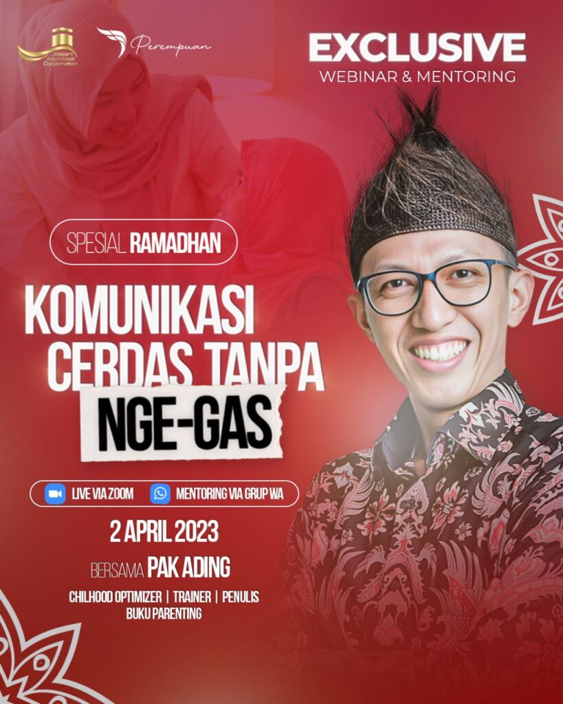 Program yang di desain untuk para ibu agar mampu memahami anak secara utuh, terhindar dari kesalahan komunikasi sehingga mampu berkomunikasi positif tanpa Nge Gas!.